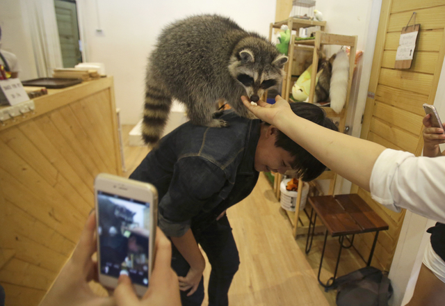 Nearby, Nuttida Chaloembun, 23, from Bangkok, watched a waitress grapple with Cracker, a 25-pound raccoon, who chattered and swatted her away with little hand-like paws.