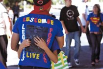 From T-shirts and wristbands to vibrant Superman floral arrangements, the Man of Steel’s signature logo was a symbol of solidarity for friends and family who gathered at the Davis Funeral Home on Wednesday night to remember Chris Luscombe.