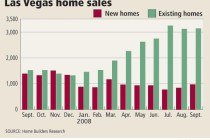 The housing outlook continues to be bleak for Las Vegas, with lagging new-home sales and falling prices, but existing-home sales topped 3,000 for the third straight month, Home Builders Research reported Thursday.