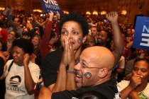 AT THE DEMOCRATIC VICTORY PARTY AT THE RIO TUESDAY NIGHT, the large-screen television at center stage was set to MSNBC while eight smaller TVs around the room carried CNN, CBS, Telemundo and one station showing re-runs of “Friends.” Not one TV was tuned to Fox News.