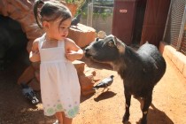 Nicole Garza, 18 months old, gets acquainted Wednesday with one of the goats at the new children’s petting zoo at the Southern Nevada Zoological-Botanical Park.