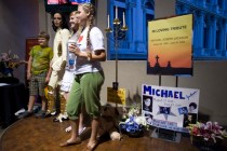 The Michael Jackson made of wax stood there, silently, as throngs of passers-by stopped to take a picture next to him.