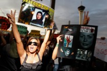About 100 supporters of election protesters in Iran rallied Thursday evening on the Strip, calling for an end to arrests and violence against demonstrators in the country.