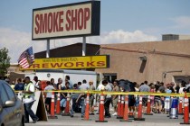 Hundreds of people lined up to purchase all sorts of fireworks Friday at the Moapa Paiute Travel Plaza just off Interstate 15 at the Valley of Fire exit. Funny thing is, any type of fireworks that explode, twirl on the ground or fly into the air are illegal in Clark County — all of the county except the sovereign land of the Indian reservation. Every person the Review-Journal chatted with said none of the fireworks purchased will be used in an illegal manner.
