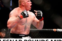 At the main event tonight at UFC 100, Brock Lesnar pinned Frank Mir to the mat early in the second round, unleashed a barrage of shots at Mir’s head and the fight was stopped at the