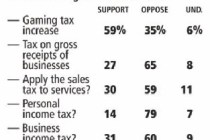 By an almost two-to-one, likely voters support raising taxes on the gambling and mining industries to avoid cuts to state programs and public employee layoffs.