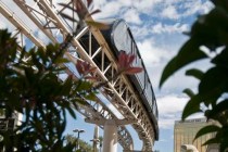 While the monorail goes begging for passengers, tourists jam the three free trams on the other side of the Strip.
