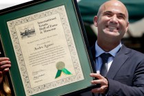 Andre Agassi kept his word. The 41-year-old Las Vegas tennis legend had promised he would enjoy his moment in the spotlight Saturday when he was inducted into the International Tennis Hall of Fame in Rhode Island.