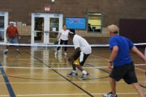 With steely eyes, the two, two-person teams stare at each other across the parquet floor. In the moments before the serve, they size each other up and adjust the grip on their paddles. With a distinctive “pa-thwock,” the ball is in play, and the modern-day gladiators move into the challenge, for this is pickleball.