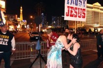 As the clock struck midnight, fireworks exploded from hotel and casino rooftops over the Las Vegas Strip, celebrating the new year.