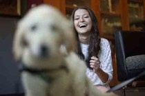 ATLANTA – Just down the hall from the reference desk at Emory University’s law library in a room housing antique legal texts is Stanley the golden retriever puppy, barking his head off.