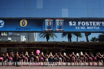 About 60 women were gathered Tuesday at the behest of the Riviera casino’s marketing department and KOMP-FM, 92.3, to celebrate the 25th anniversary of “Crazy Girls” with the “world’s longest butt lineup,” re-creating the topless show’s iconic pose that has been plastered across billboards since the 1980s.