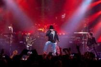 Axl Rose was all smiles on Friday night at The Joint at the Hard Rock Hotel, where Guns N’ Roses performed the second show of their 12-concert residency at the venue, which runs through Nov. 24.