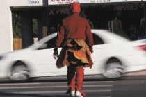 Las Vegas police officer gobbles up his work as the costumed turkey in the third annual Turkey in the Crosswalk pedestrian safety project, co-sponsored by the Metropolitan Police Department and UNLV’s Safe Community Partnership.