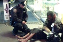 NEW YORK – A tourist’s snapshot of a New York City police officer giving new boots to a barefoot homeless man in Times Square has created an online sensation.