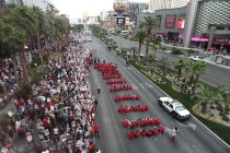 Members of Culinary Local 226 blocked traffic on the Strip in front of the Cosmopolitan hotel Wednesday to protest stalled contract negotiations with management.
