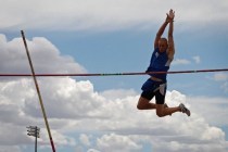 In teh photos above, Sophomore Evan McDowell of Air Force clears the pole vault bar and freshman Karsen Sper of San Diego State lands in the long jump pit Thursday during the decathlon and heptathlon competitions in the Mountain West Track and Field Championships at UNLV. Senior Josh McMillin of Colorado State won the men’s decathlon. Junior Allison Reaser of San Diego State won the women’s heptathlon, and sophomore Juliet Summers was UNLV’s top finisher in 12th place. The championships continue at 8 a.m. Friday and Saturday at Myron Partridge Track Stadium on campus.