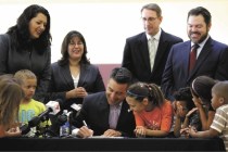 Gov. Brian Sandoval signed a bill into law Wednesday morning that will provide $50 million to Nevada schools over the next two years to improve the academic performance of students learning English.