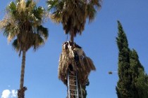 Las Vegas firefighters rescued an unidentified Las Vegas tree trimmer when he became stuck underneath palm fronds about 35 feet in the air for about 90 minutes Saturday afternoon.