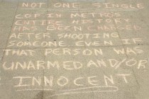 Four people could face up to a year in jail for chalking up city sidewalks while protesting police misconduct.