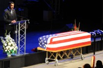A Nevada math teacher killed by a 12-year-old student in a school-yard shooting that also wounded two students was remembered for his character, selfless acts and military service at a memorial service Sunday.