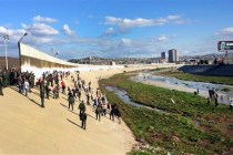 U.S. Border Patrol agents were pelted with rocks and bottles while turning back a crowd of more than 100 people who crossed the border illegally into California, authorities said.