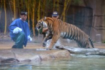 An animal handler was recovering in a hospital on Thursday after being attacked by a Bengal tiger at a zoo in Australia owned by the family of late wildlife expert Steve Irwin.