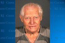 An 86-year-old Nevada woman shot by her husband while hospitalized died Wednesday and her spouse of more than six decades was charged with murder, authorities said.