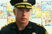 A police officer shot a 17-year-old runaway in the wrist at a Hawaiii high school after the teen cut one officer with a knife and punched two others, authorities said.