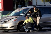Las Vegas police said a pedestrian died after being struck by a minivan early Wednesday morning on Spring Mountain Road near Hauck Street.