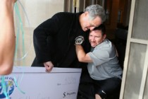 An American flag waves proudly in front of an honored veteran’s home as he pulls his car into the garage with his wife. As they step out, the young couple is greeted by a frenzy of media waiting to catch their reaction as they are given the keys to their new house.