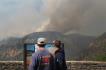A wind-whipped wildfire in a canyon near Flagstaff dramatically increased in size Wednesday as it sent up choking plumes of smoke, threatened homes and scuttled Memorial Day weekend plans in the popular hiking and camping area.