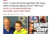 An 11-year-old boy is crediting what he learned from playing the game Grand Theft Auto for helping him save his grandfather’s life.