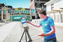 British artist Glyn Macey was scheduled to visit the Strip’s iconic “Welcome to Fabulous Las Vegas” sign Friday, but he moved up the painting session to Thursday afternoon.