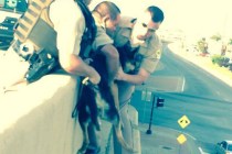 A photo of Wichita police officers rescuing a 6-month-old German shepherd from an overpass helped reunite the frightened animal with his owners.