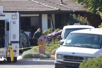 Four people and a dog were found stabbed to death in a Southern California home, and authorities said the sole suspect was in custody Tuesday.