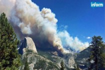A wildfire that prompted the rescue of 185 hikers in Yosemite National Park has blackened four square miles of back country wilderness, officials said Monday, as crews hoped rainy weather would give them a chance to gain some control over the flames.