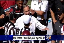 The Pac-12 Conference has reprimanded and fined Southern California athletic director Pat Haden $25,000 for coming down to the field at Stanford Stadium on Saturday and confronting game officials.