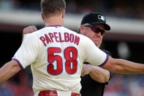 Major League Baseball suspended umpire Joe West for one game without pay on Wednesday for grabbing the jersey of Philadelphia Phillies closer Jonathan Papelbon.