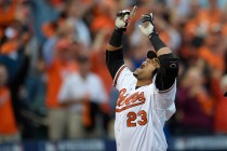 Nelson Cruz and J.J. Hardy homered, and the Baltimore Orioles hammered out 12 hits in defeating Cy Young Award winner Max Scherzer and the Detroit Tigers 12-3 Thursday in the opener of their AL Division Series.
