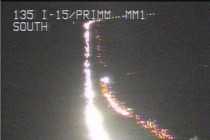 A semi-truck crash closed southbound Interstate 15 near the California state line, Nevada Highway Patrol said Friday evening.