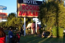 The pink ceramic elephant is like a hood ornament on the empty swimming pool at the Diamond Inn motor lodge. Before the start of the Las Vegas Rock ‘n’ Roll Marathon, runners used it to stretch hamstrings.