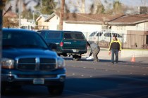 A 46-year-old pedestrian was killed when she was hit by a pickup Tuesday morning in the northeast valley, Las Vegas police said.