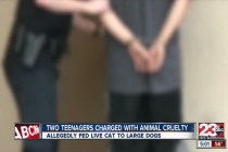 Two teenagers accused of feeding a live cat to two dogs, videotaping the attack and posting it online have been arrested in central California on suspicion of cruelty to an animal.