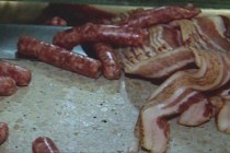 Police in Massachusetts have arrested a woman who they say smeared uncooked bacon and sausage all over a police station dispatch window offering to “feed the pigs.”