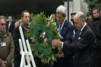 French police arrested 12 people on Friday suspected of helping militant Islamist gunmen in last week’s killings in Paris, where visiting U.S. Secretary of State John Kerry laid wreaths at two main attack sites.