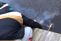 A viral video of what happens when a bottle rocket and a frozen lake meet.