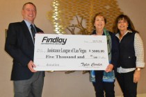 The Assistance League of Las Vegas recently received a check from Findlay Automotive Group for $5,000 to help meet clothing needs for schoolchildren. Findlay Automotive Group Chief Financial Officer Tyler Corder delivered the check Dec. 4 to the chapter’s offices at 6446 W. Charleston Blvd.