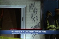 Fire crews responding to reports of an explosion at a suburban Denver home early on Tuesday found the residence engulfed in flames with “my wife is a cheater” scrawled on the structure, authorities said.