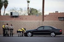 She was crossing Rainbow outside of a marked crosswalk from west to east when she was struck by the Mercedes-Benz, Metro said.